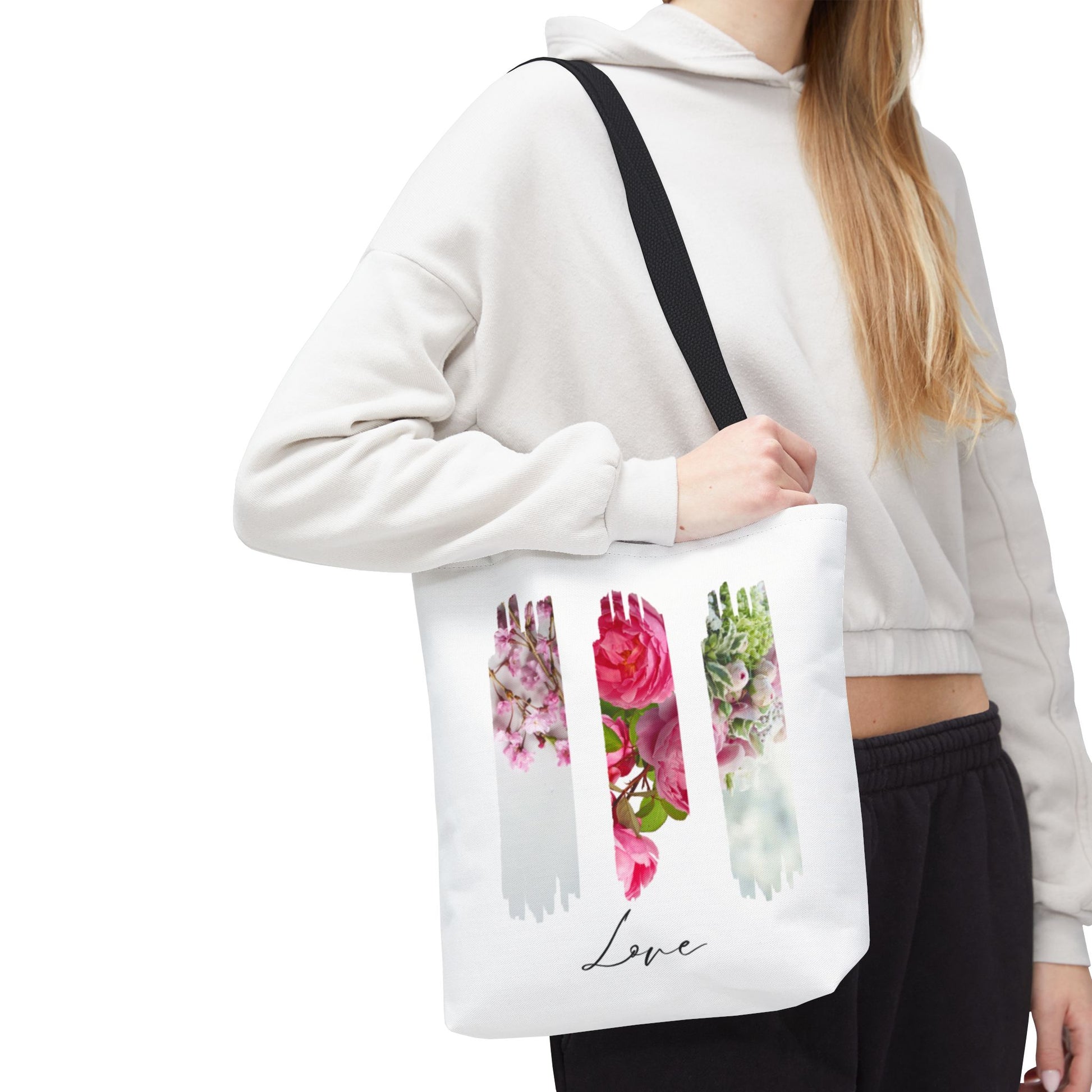 Chic floral tote bag, eco-friendly and reusable. Perfect for shopping, beach days, or everyday use. A stylish and practical gift for her.