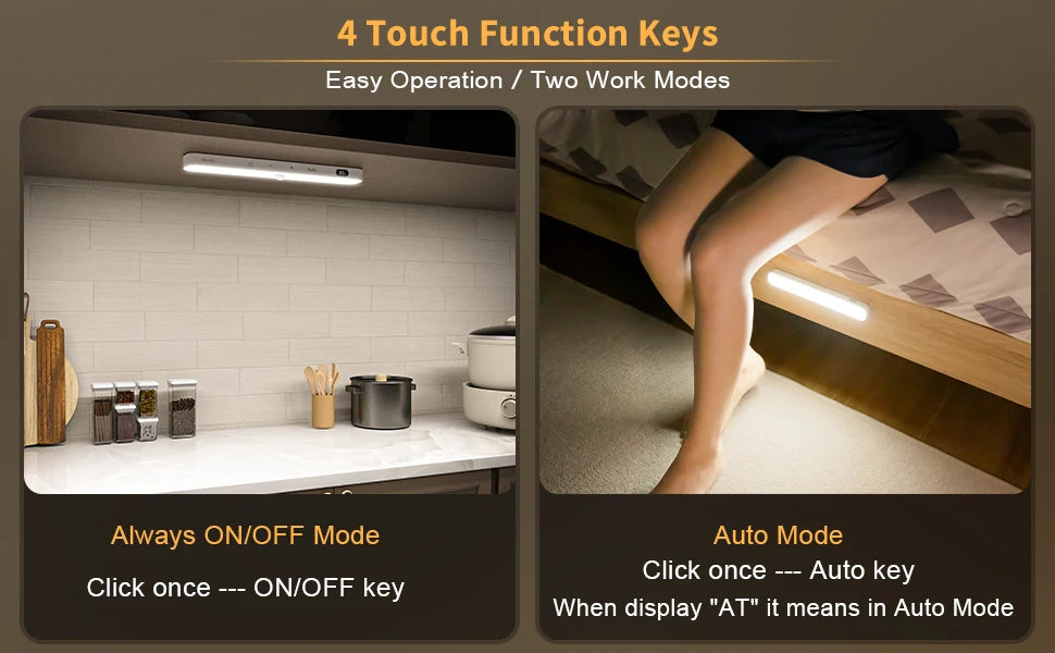 There are 4 touch keys on the cabinet light, one key for one function, easy to operate.